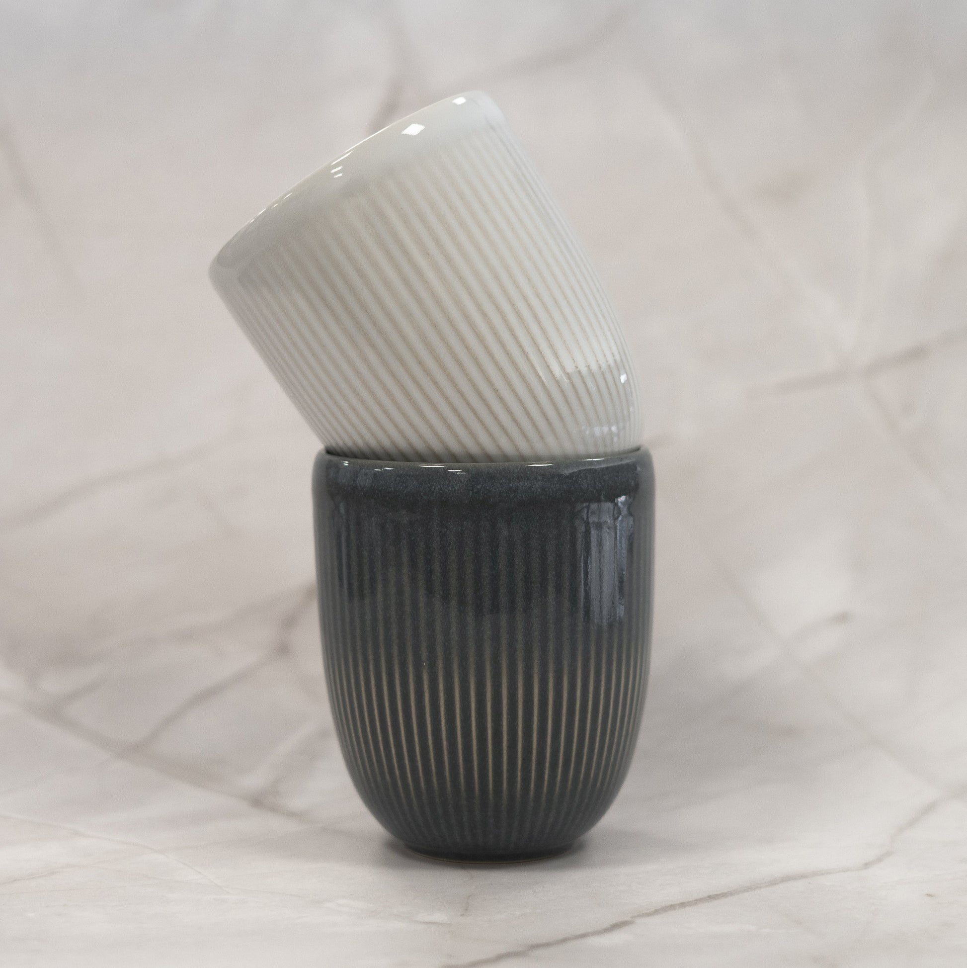 Mug bicolore blanc et bleu gris d'une capacité généreuse de 40cl. Ce mug maintient vos boissons à température idéale plus longtemps. Son design contemporain et sa contenance parfaite en font un choix privilégié pour les amateurs de thé, café ou infusions au quotidien.